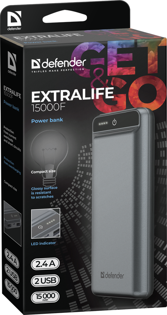 Внешний аккумулятор Defender ExtraLife 15000F (83668)
