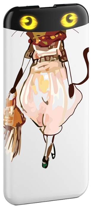 Комментарий : Как мой старый, так и новый телефончик эта кошка заряжает уверенно, купила без рисунка просто в белом корпусе и вполне довольна, хотя на корпус смотрю в последнюю очередь и больше всего тут взгляд притягивают именно глаза. Носить с собой в принципе не проблема из-за миниатюрных размеров корпуса, в сумочку устройство помещается без проблем.