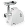 Современная электрическая мясорубка MG2003 обладает множеством возможностей – перерабатывает мясо в фарш, изготавливает лапшу и даже выжимает сок из мягких фруктов и овощей. При максимальной мощности 2000 Вт имеет отличную производительность – 1,5 кг/мин. В комплект входят 2 перфорированных диска для фарша. Важной характеристикой является наличие реверса – обратная прокрутка шнека, позволяющая избавиться от намотавшихся жил, затрудняющих работу устройства. Для удобства и экономии пространства предусмотрен отсек для хранения дисков и ножа.