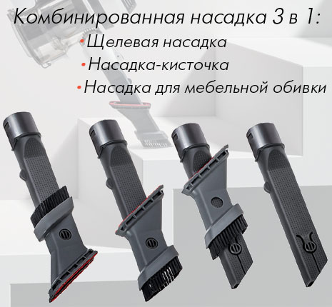 Насадки в комплекте 3-в-1 (щелевая, кисточка, для мебельной обивки)