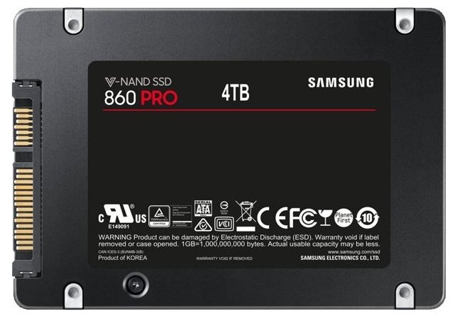 * TBW гарантия для 860 PRO: 300 TBW для 256 ГБ модели SSD, 600 TBW для 512 ГБ модели, 1200 TBW для 1 ТБ модели, 2400 TBW для 2 ТБ модели и 4800 TBWдля 4 ТБ модели.
