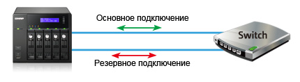 В режиме отказоустойчивости накопитель использует только один Ethernet-порт. При разрыве соединения трафик автоматически направляется через другое соединение.