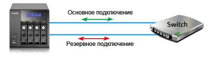 В режиме отказоустойчивости накопитель использует только один Ethernet-порт. При разрыве соединения трафик автоматически направляется через другое соединение.